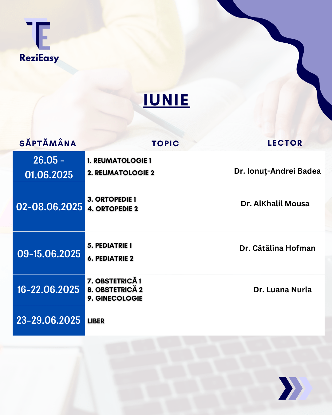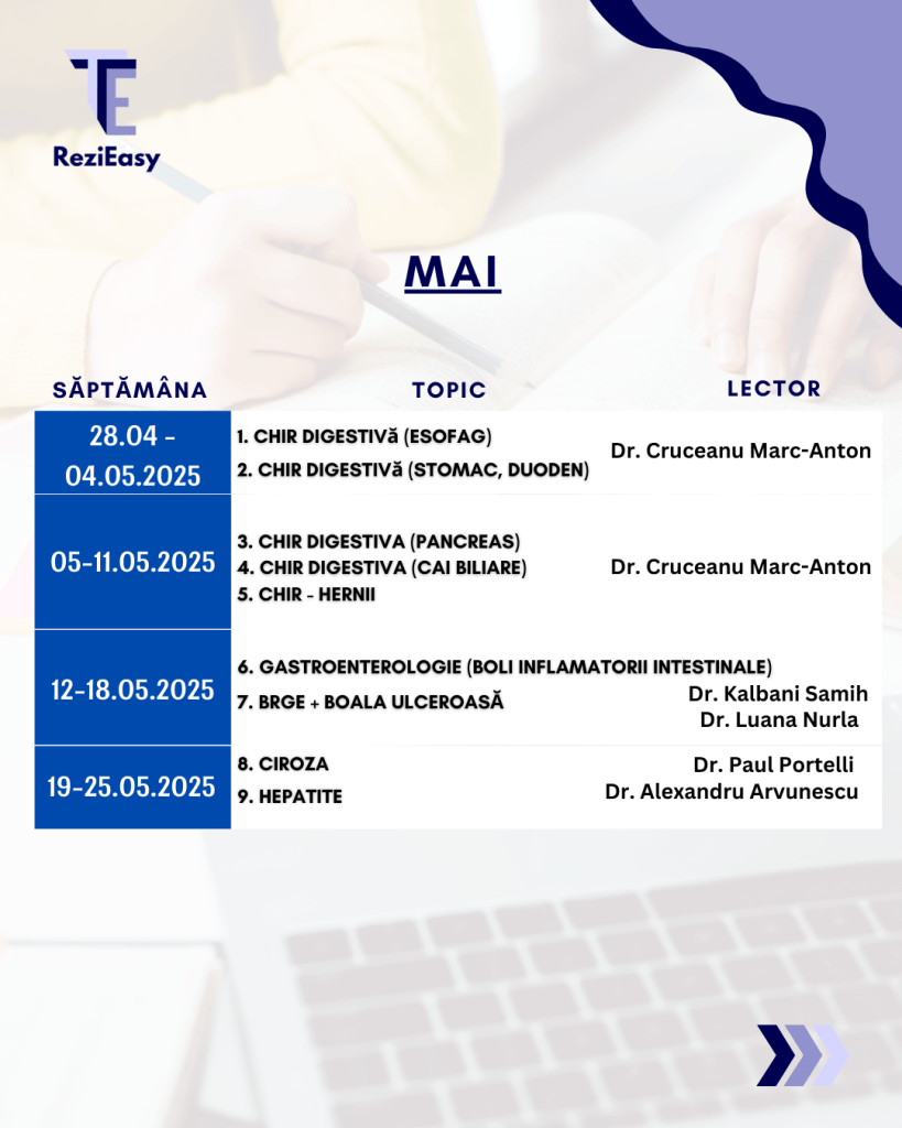 Cursurile se pot vizualiza până la examenul de rezidențiat 2025.